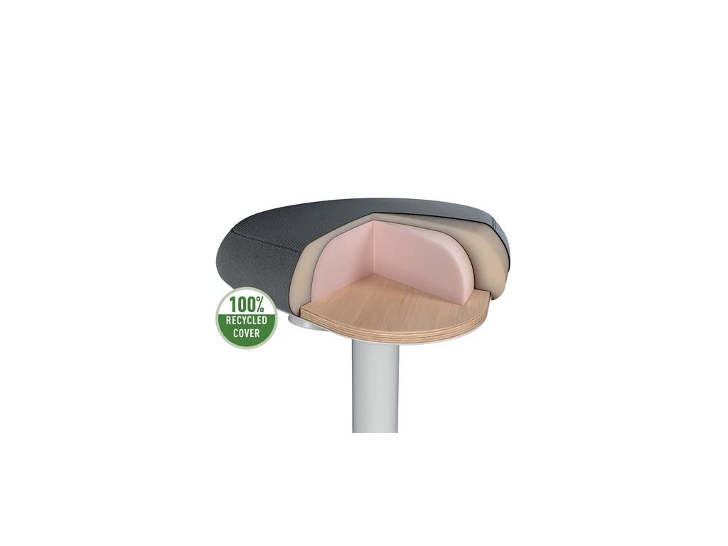 Trojuholníkový tvar sedadla, podobný sedlovým stoličkám, rovnomerne rozkladá váhu na panvové kosti. Mäkké penové čalúnenie znižuje celkovo tlak na stehná a nohy.