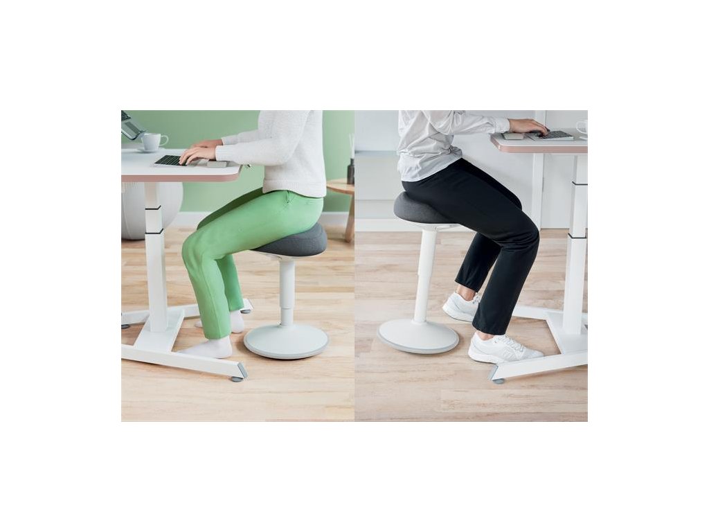 Štýlová a ergonomická stolička na sedenie vás udrží v aktivite pri sedavej práci, kompaktný dizajn umožňuje uloženie pod stôl.