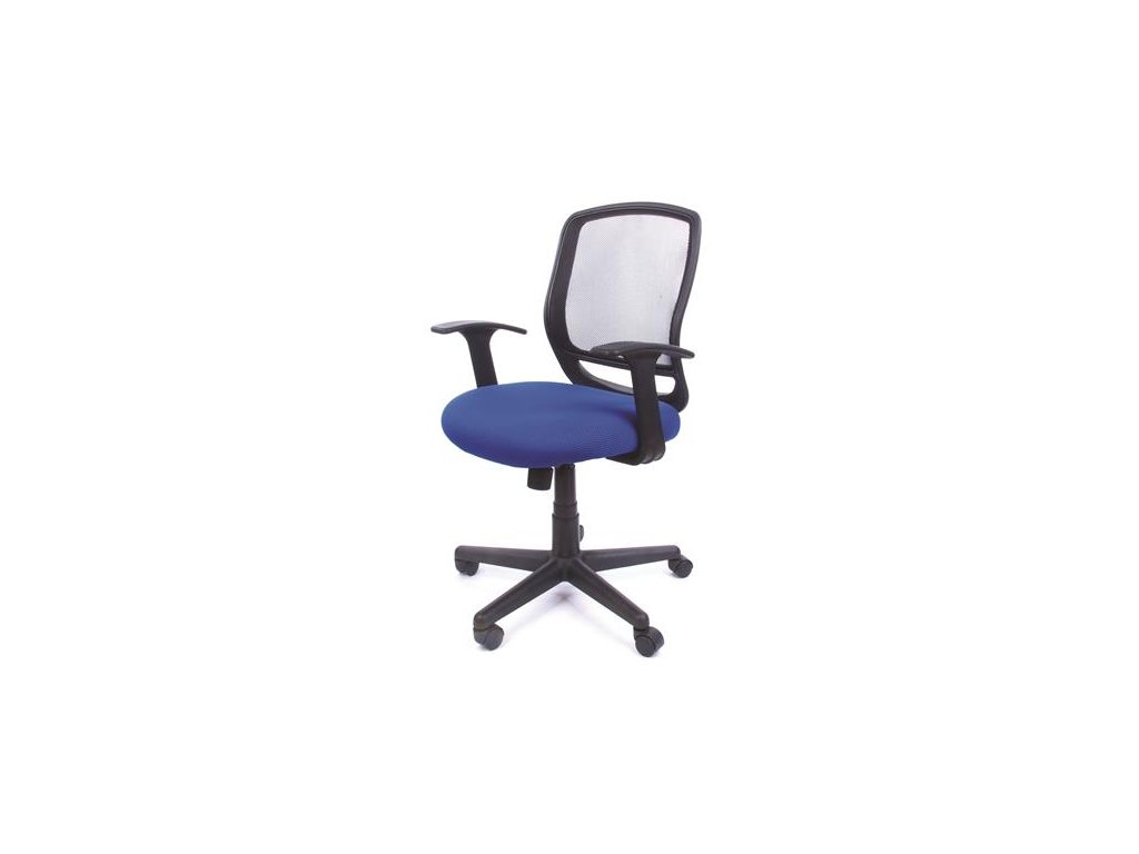 Kancelárska stolička, s opierkami rúk, modré čalúnenie, sieťované operadlo, čierny podstavec, MaYAH "Fun"